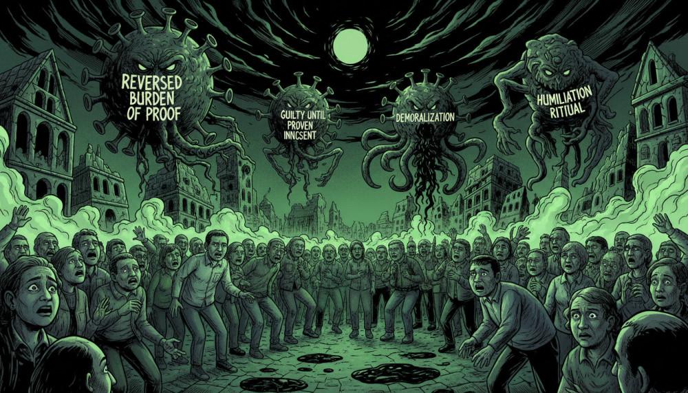 The recent era of biomedical statecraft revealed a deep philosophical and legal crisis that strikes at the foundations of Western liberty. At the heart of this collapse is a subtle but devastating inversion of the burden of proof, an epistemological error weaponized through the political application of germ theory. In any society governed by reason and natural law, a man is presumed healthy until proven sick, and innocent until proven guilty. The modern state, however, fueled by a materialist obsession with an impossible standard of safety, flipped this bedrock principle on its head. The citizenry was treated as a collective of biological liabilities, presumed to be a threat until they could demonstrate compliance with state mandates. This is not merely a policy error; it is a fundamental fallacy that transforms free citizens into subjects of a technocratic containment state.